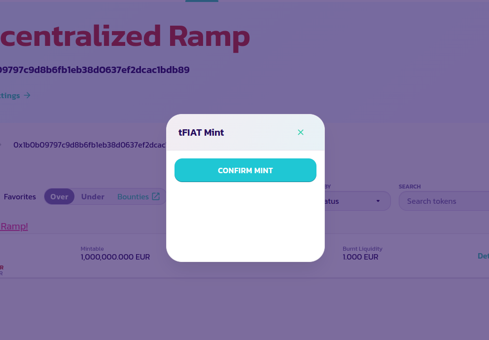 Klik tombol **CONFIRM MINT** dan validasi transaksi. Anda seharusnya melihat jumlah token yang baru saja Anda cetak ditransfer ke dompet Anda dan tercermin dalam saldo dompet Anda dikurangi biaya pencetakan dRamp serta biaya pencetakan PaySwap.