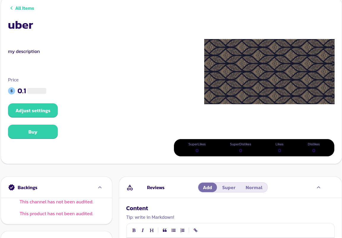 সুপার রিভিউ সাধারণ রিভিউ থেকে আলাদা যে সেগুলি সুপারলাইক/সুপারডিসলাইকের সাথে আসে (আপনি পণ্যটি পছন্দ করেছেন কি না তার উপর নির্ভর করে)। আপনি SuperLikes স্প্যান করতে পারবেন না যে সেগুলি আপনার পণ্যের অন্তর্গত কর্মক্ষেত্রের Leviathan-এ লক করা মোট তহবিলের দ্বারা সীমাবদ্ধ। অন্য কথায়, যখন অন্য প্ল্যাটফর্মে, আপনি PaySwap-এ পণ্যের মতো স্প্যাম করতে পারেন, আপনি যতবারই একটি পণ্য পছন্দ করেন না কেন, আপনার পণ্যের কর্মক্ষেত্রের Leviathan-এর অধীনে আপনি যে অর্থ লক করেছেন তার দ্বারা আপনার লাইকের ওজন সীমিত।