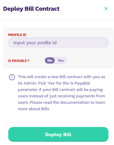 * Gehen Sie zur [Rechnungsseite](https://payswap.org/bills) und klicken Sie auf die Schaltfläche **Rechnung bereitstellen**.