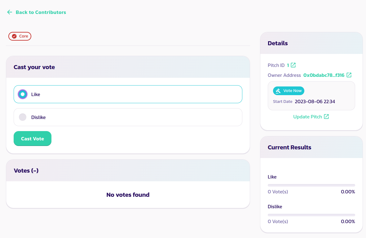 Sie können auch den Abschnitt über das Hinzufügen von Bestechungsgeldern lesen und denselben Prozess befolgen, um Bestechungsgelder zu Ihrem Mitwirkenden hinzuzufügen, um Benutzer zu motivieren, dafür zu stimmen.