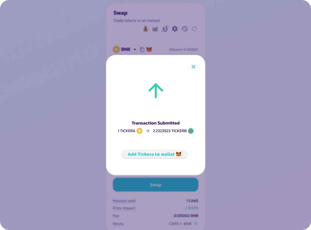 *Ihre Brieftasche kann Sie dazu auffordern, die Anzahl der Token einzugeben, die Sie genehmigen möchten. Bitte geben Sie eine Zahl ein, die größer oder gleich der Anzahl der Token ist, die Sie tauschen möchten.*