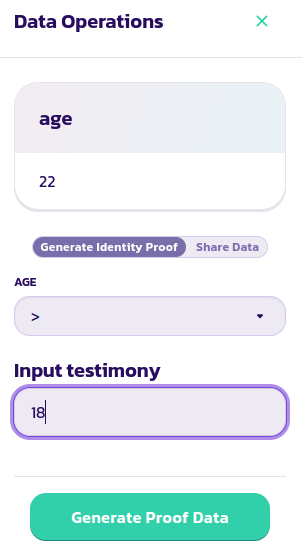 * 위 이미지에서 생성되고 있는 제로 지식 증명은 사용자의 나이가 18세를 초과한다는 것을 나타냅니다. 양식을 확인하세요.