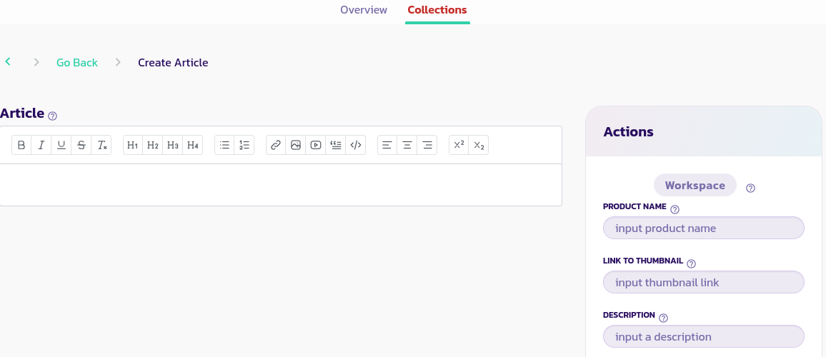 Clique no botão Listar Produto para revelar o formulário abaixo e clique na guia Artigo para ir para a página mostrada na imagem abaixo.
