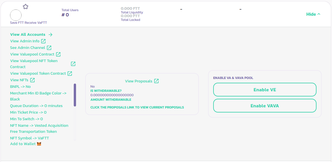 * Clique no link **Visualizar Contrato de Token NFT da Valuepool** para abrir uma página com as informações de endereço