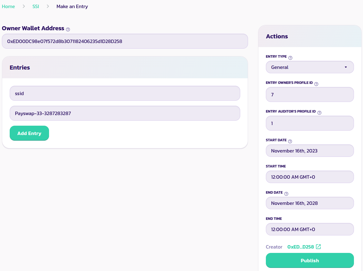 Como auditor, certifique-se de configurar seu contrato de auditor para que os usuários possam entrar em contato com você para criar seus SSIDs. Por favor, siga o guia na página abaixo para aprender mais sobre como fazer isso: