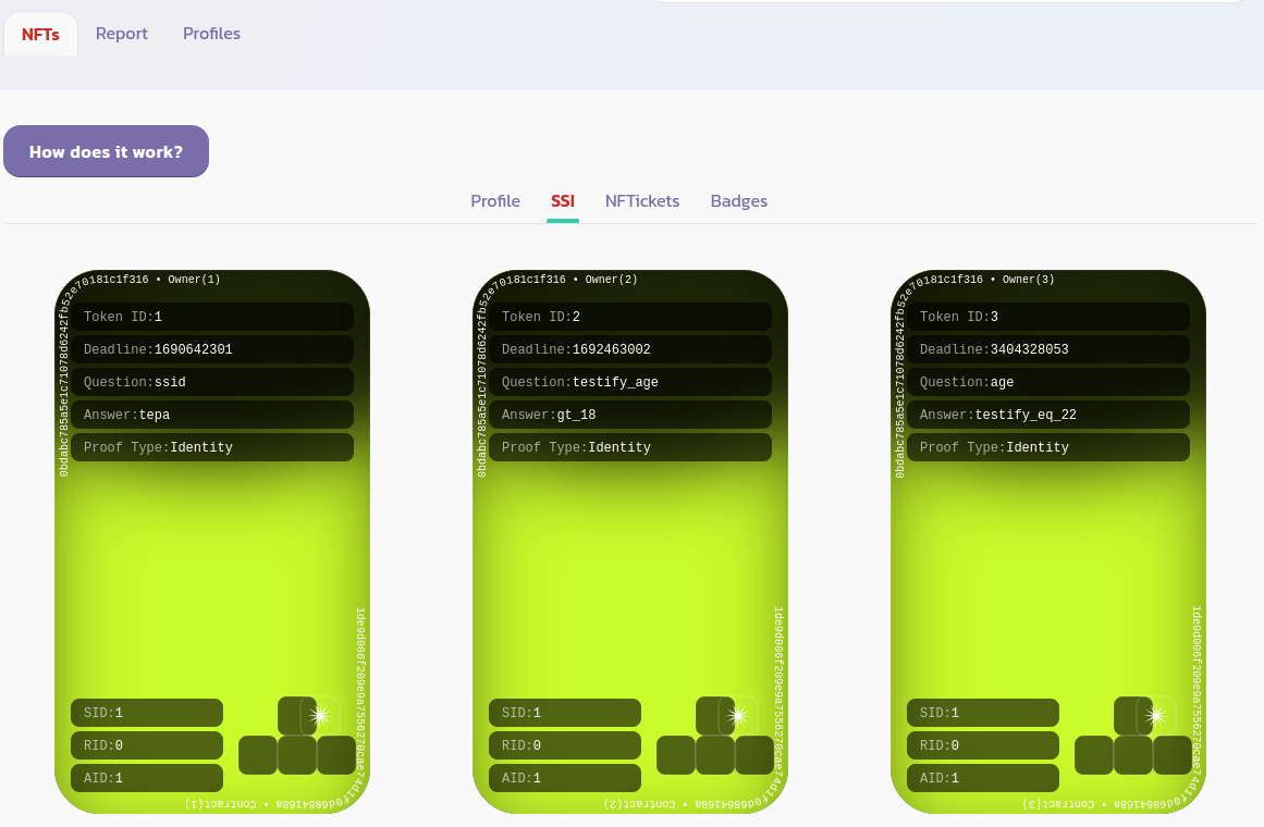 * Você deveria ser capaz de visualizar o token gerado a partir da aba **NFTs > SSI** na sua página de perfil assim como com os tokens de identidade