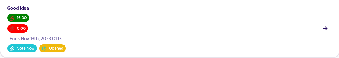 To vote on the proposal, go to the proposals' page and under the Opened tab (like in the image above), you should be able to view a list of proposals that are currently opened for votes. You can read: