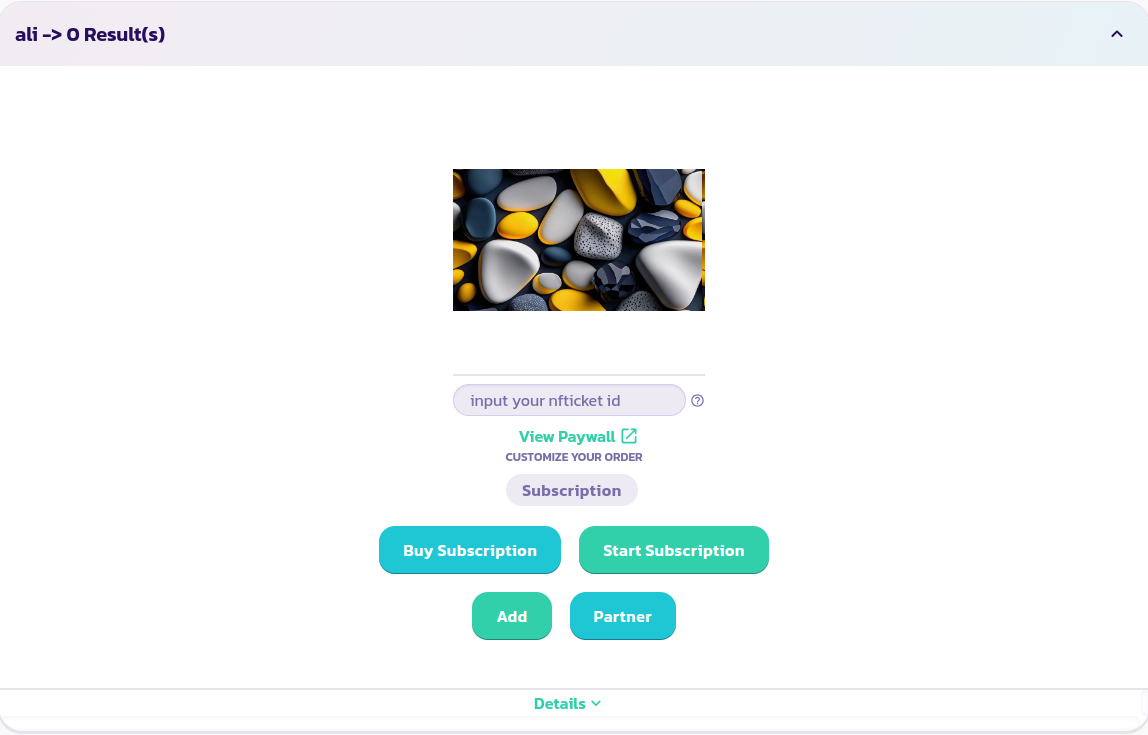 3. ペイウォールの背後にあるコンテンツを表示するには、サブスクリプションを購入して受け取ったNFTicket/eReceiptのIDを**NFTicket IDを入力**フィールドに入力します。これにより、ペイウォールがサブスクリプションがアクティブ化されているかどうかを検出できます。すべての前のステップが正常に完了している場合、フィールドにIDを入力した数秒後にペイウォールのすべてのコンテンツを表示できるはずです。