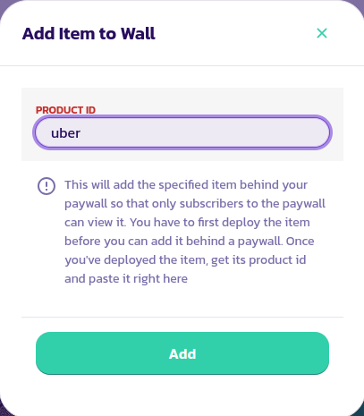 * Ürünü ücretli duvarınıza eklemek istediğiniz ürünün kimlik numarasını girin. Formu doğrulayın