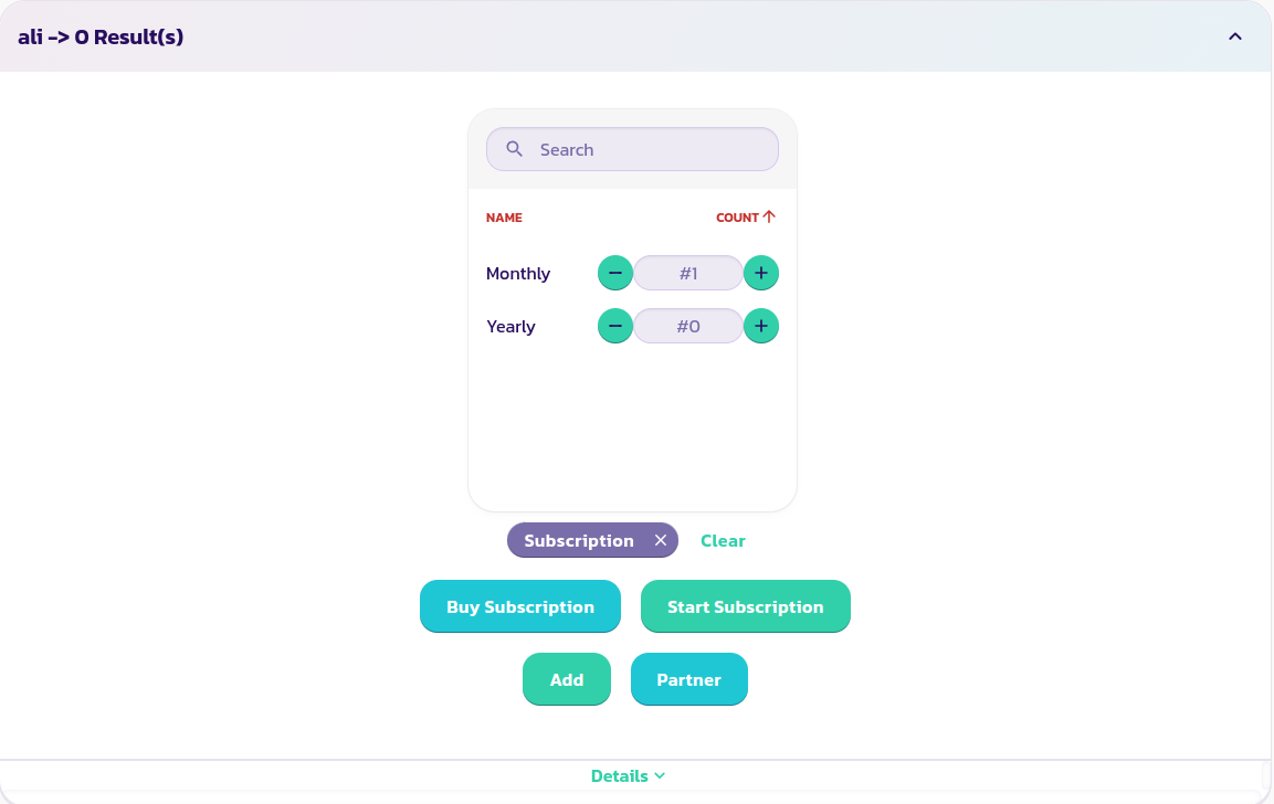 * **Abonelik Satın Al** düğmesine tıklayın, formu doldurun ve doğrulayın. Abonelikleri doğrudan cüzdanınızla, bahis piyasası aracılığıyla veya bir Değer Havuzu/DAO aracılığıyla satın alabilirsiniz. Her durumda nasıl ilerleyeceğinizle ilgili kılavuzlar, ürünler/hizmetler bölümünde mevcuttur.